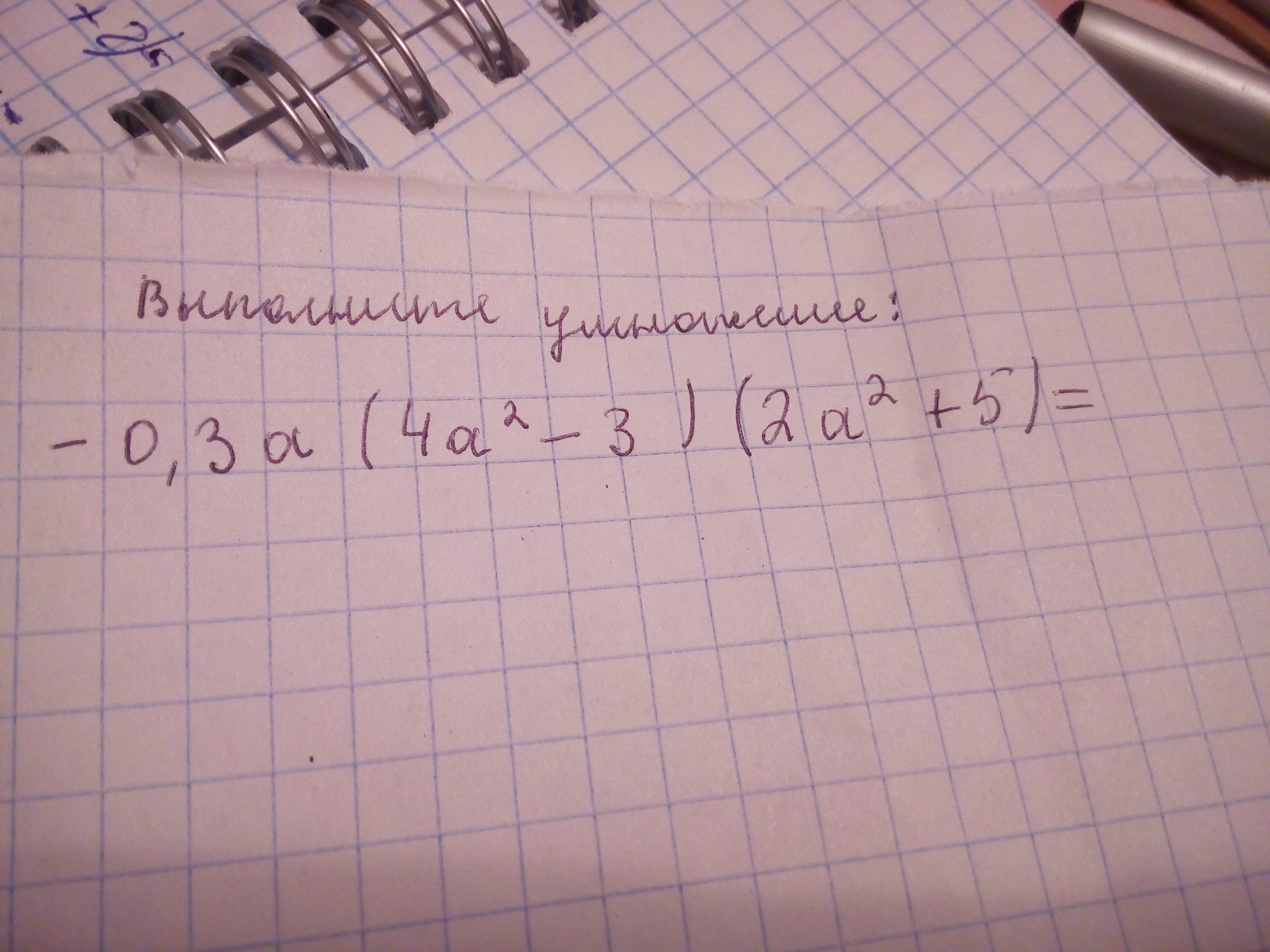 - -0,3a*(4a^2-3)*(2a^2+5)=-0,3a*(8a^4-6a^2+20a^2-15)=-0,3a*(8a^4+14a^2-15)=-2,4a^5-4,2a^3+4,5a