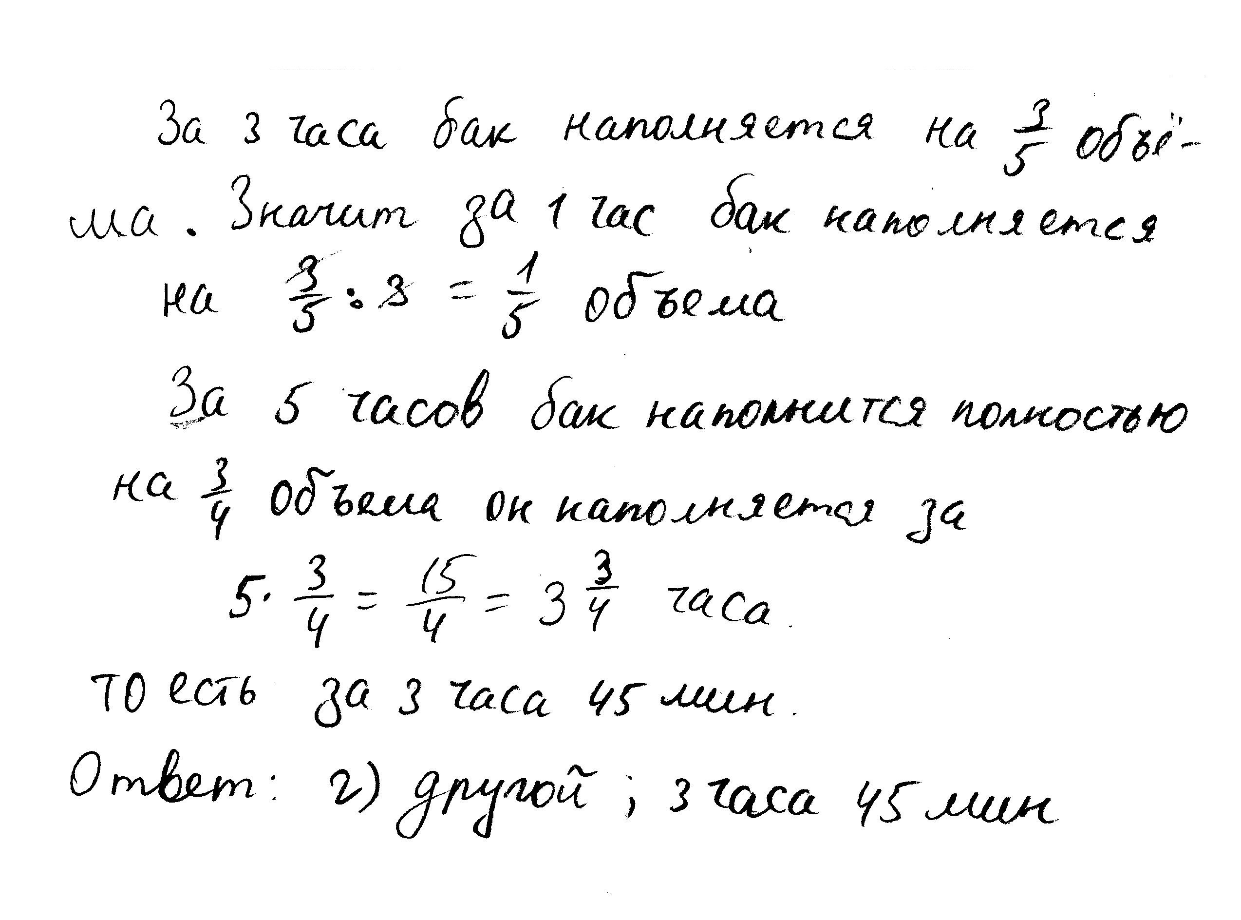 За 3 часа бак наполняется на 3/5 своего объёма. За какое время он наполняется на 3/4 объёма?
