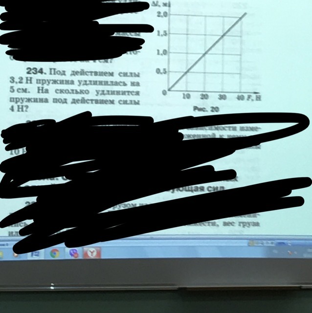 k1=k2 k=F/x F1/x1=F2/x2 x2=F2*x1/F1=4*5/3.2=6.25 см