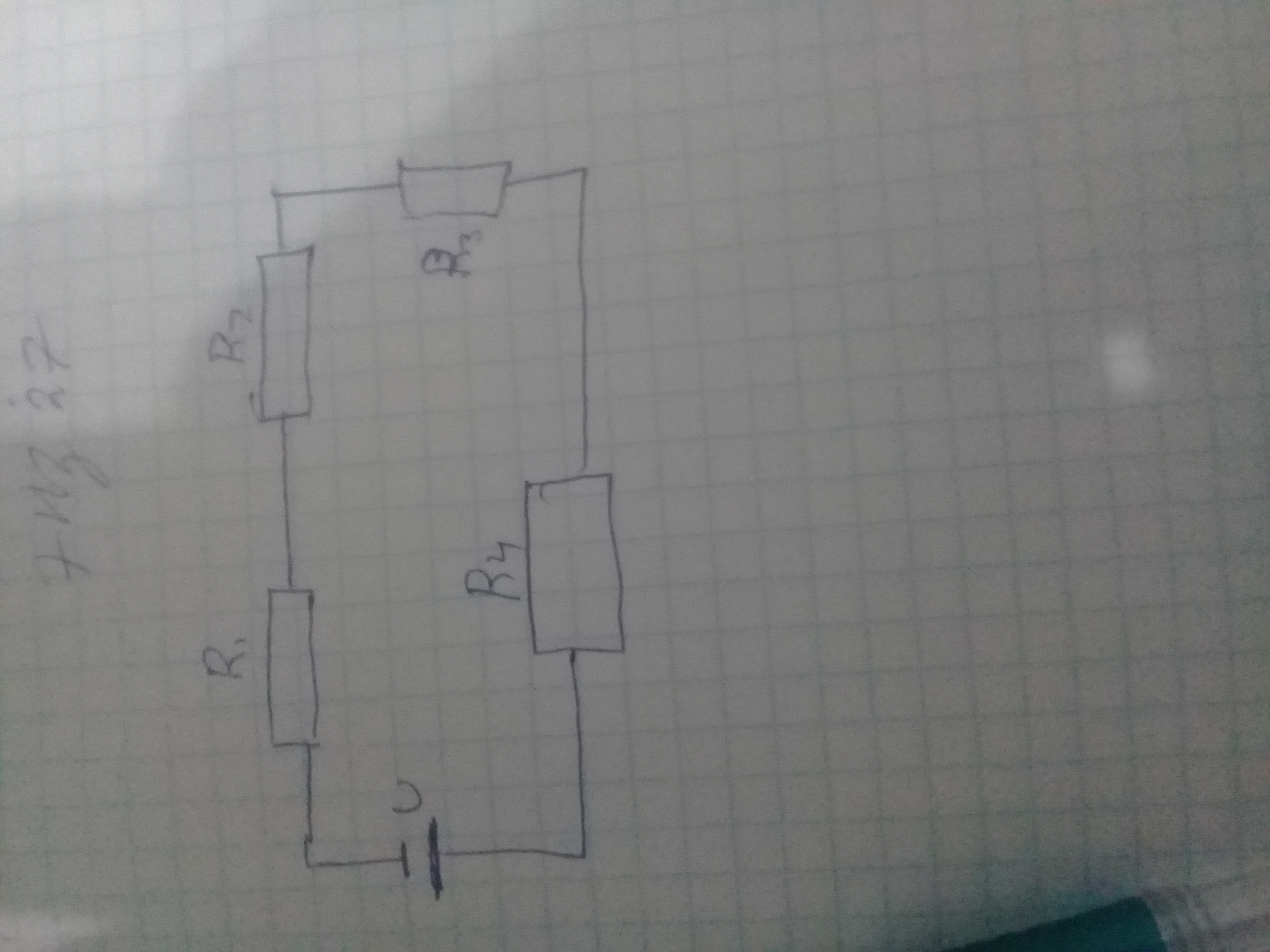 По тому же закона Ома найдём напряжения, которые падают на резисторы: . U1=0,25*10=2,5 В; U2=0,25*25=6,25 В; U3=0,25*15=3,75 В; U4=0,25*14=3,5 В.