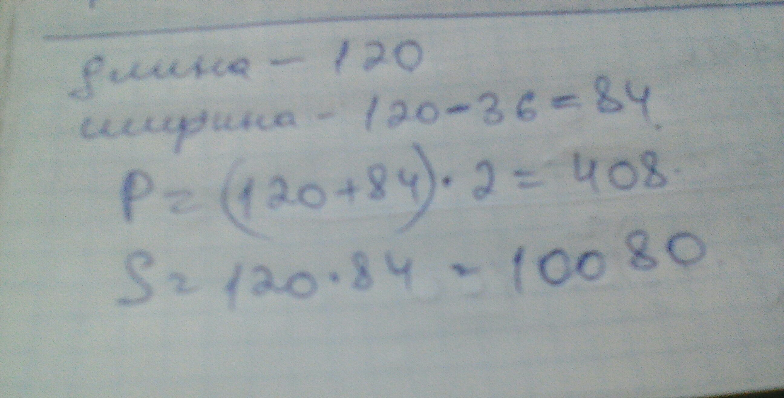 2) (84*2) + (120*2) = 408 (м) - периметр.