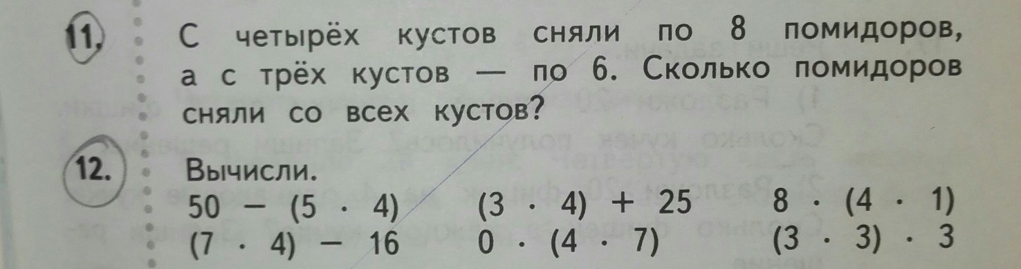 Вообще-то в первой задаче будет 4*8+3*6=32+18=50 помидоров