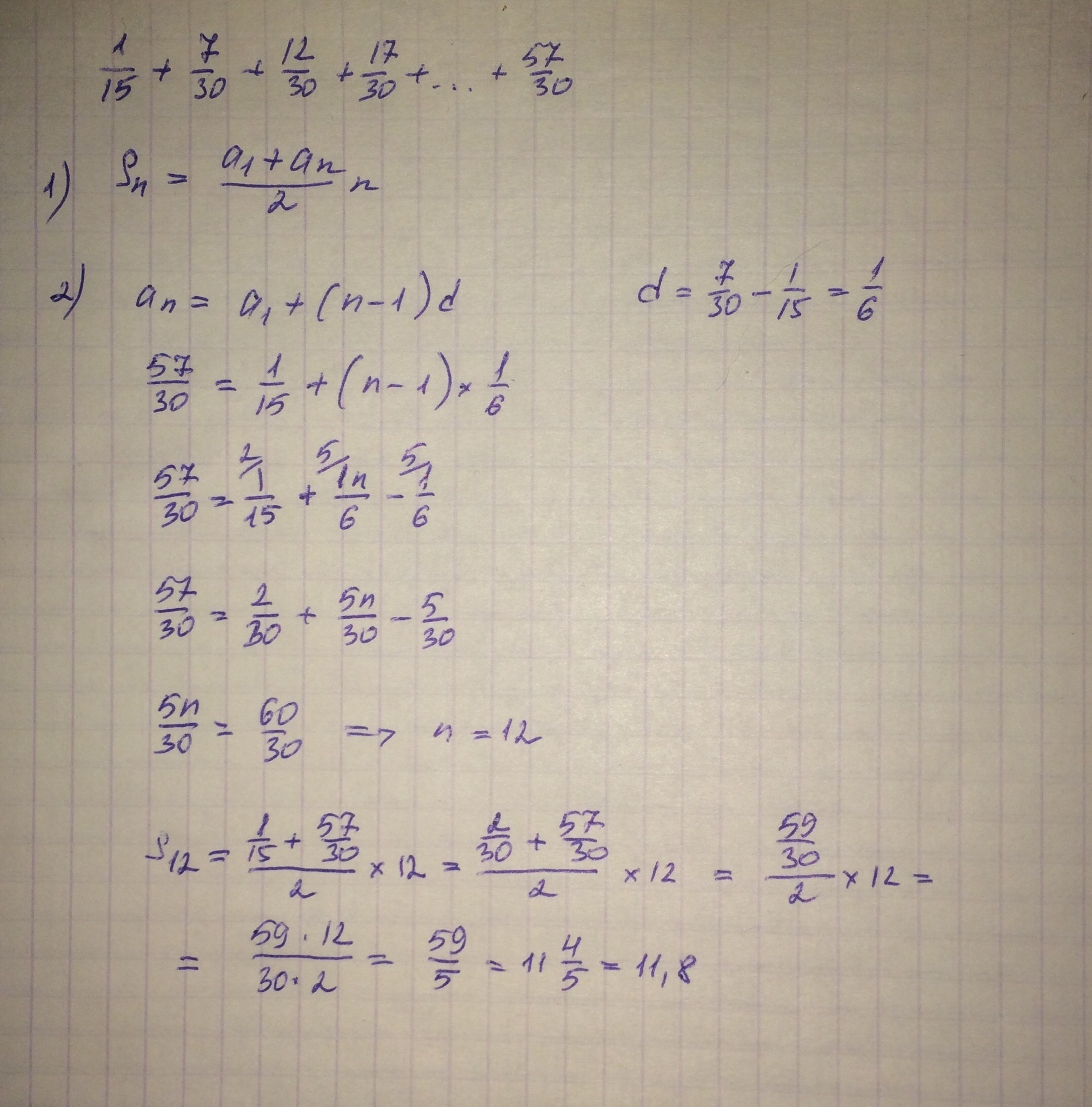 Имеем арифметическую прогрессию, где разность d=5/30 или d=1/6.