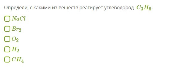 Определи, с какими из веществ реагирует углеводород C₃H₆