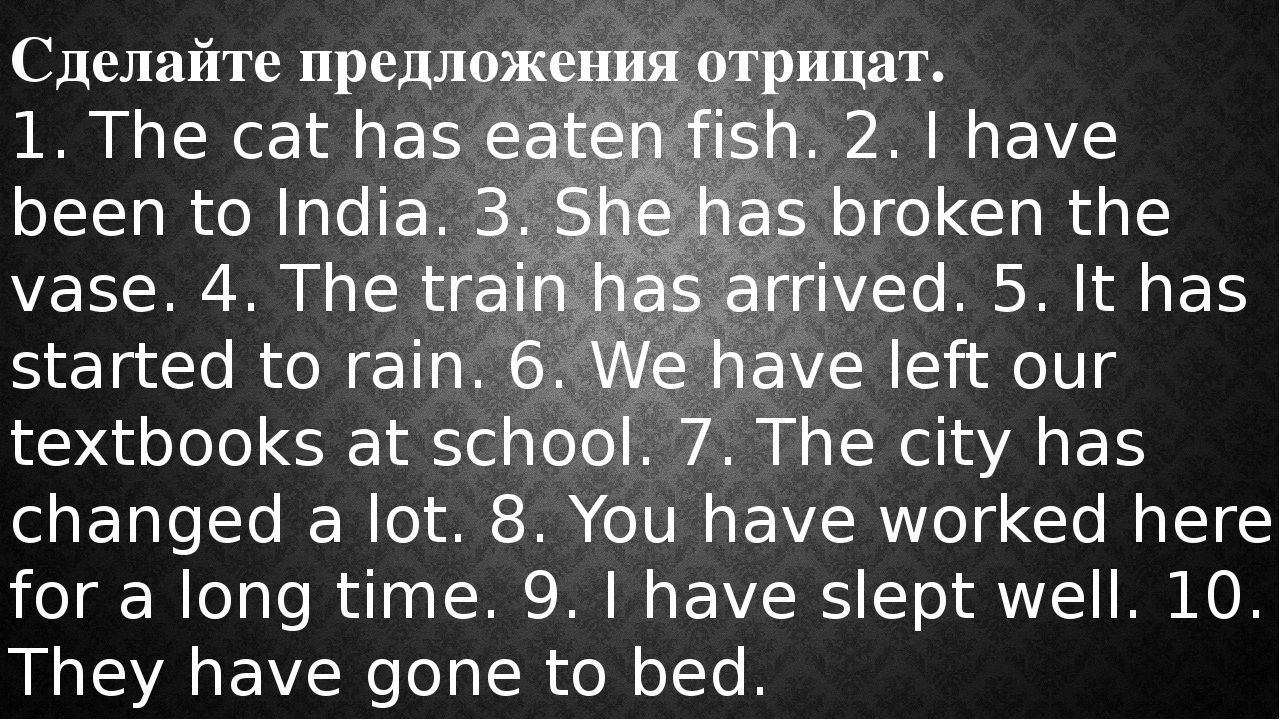 1) The cat has not eaten fish