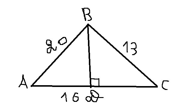 BD(2)=20(2) -16(2)=144 BD=12 DC(2)=13(2)-12(2)=25 DC=5
