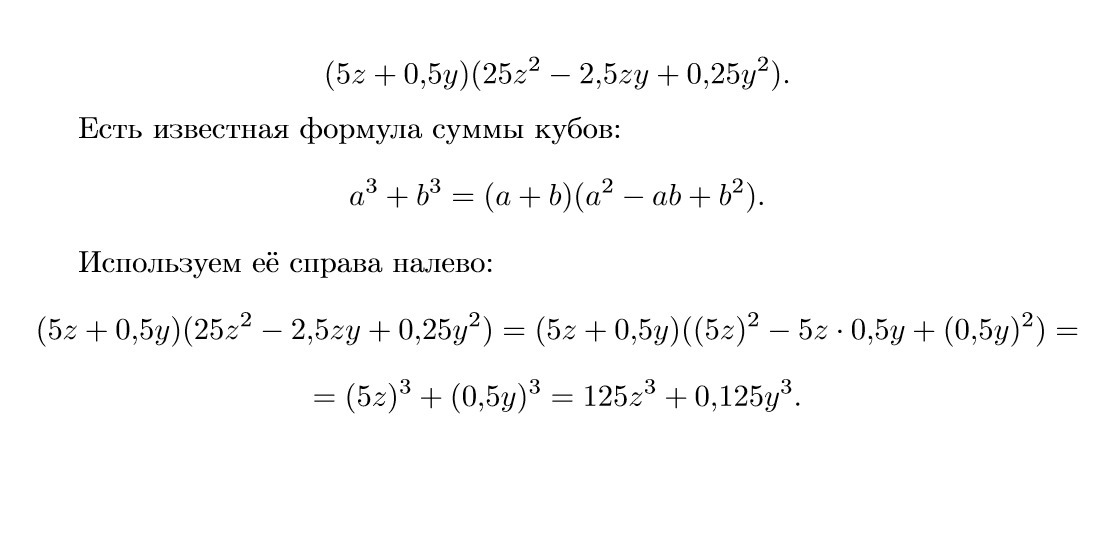 это все по формуле сумме кубов = (5z+0,5y) в третьей степени