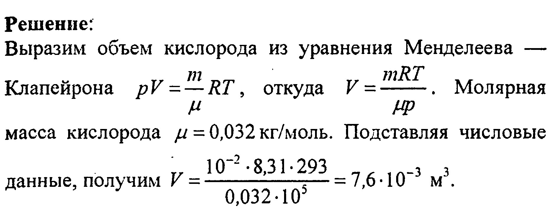 Определите давление, при котором кислород массой 100 г при температуре 20С займёт объём 20 литров