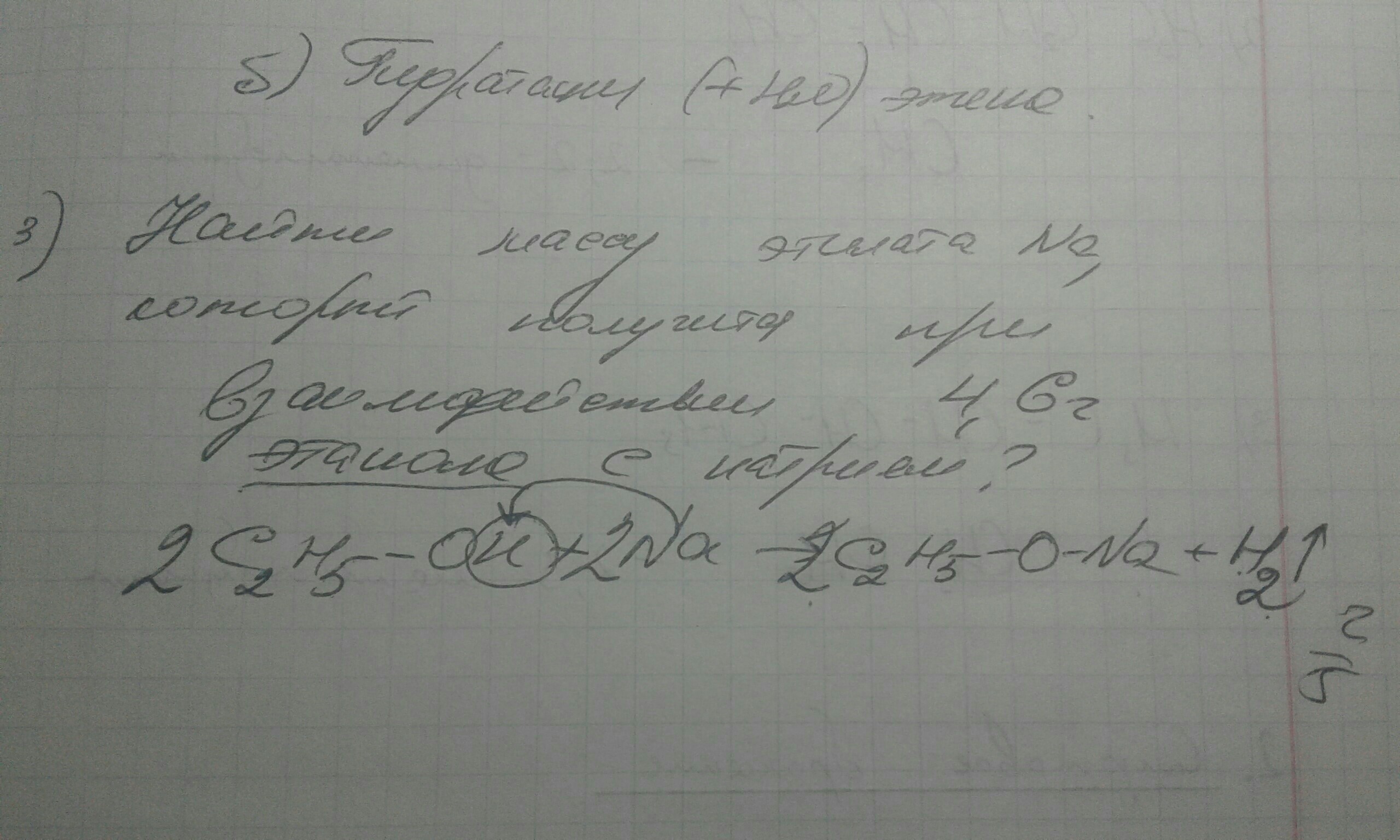 1) Найди массу этилата натрия(Na) который получается при взаимодействии 4,6 г этанола с натрием?