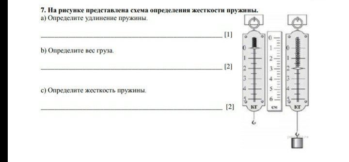 Первые два вопроса можно понять по рисунку, только 3 см переводишь в метры. В 3 используешь формулы силы (через ускорение свободно падения) и силы упрогости. Приравниваешь и из уравнения выводишь жесткость (k)