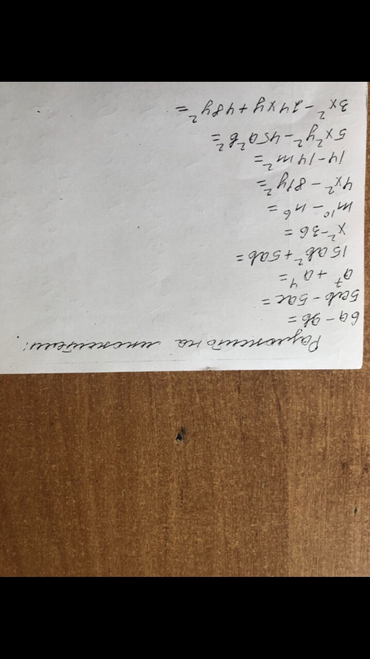 9. 5x^2 y^2 - 45a^2 b^2 = 5(x^2 y^2 - 9a^2 b^2); 5(xy-3ab)*(xy+3ab)