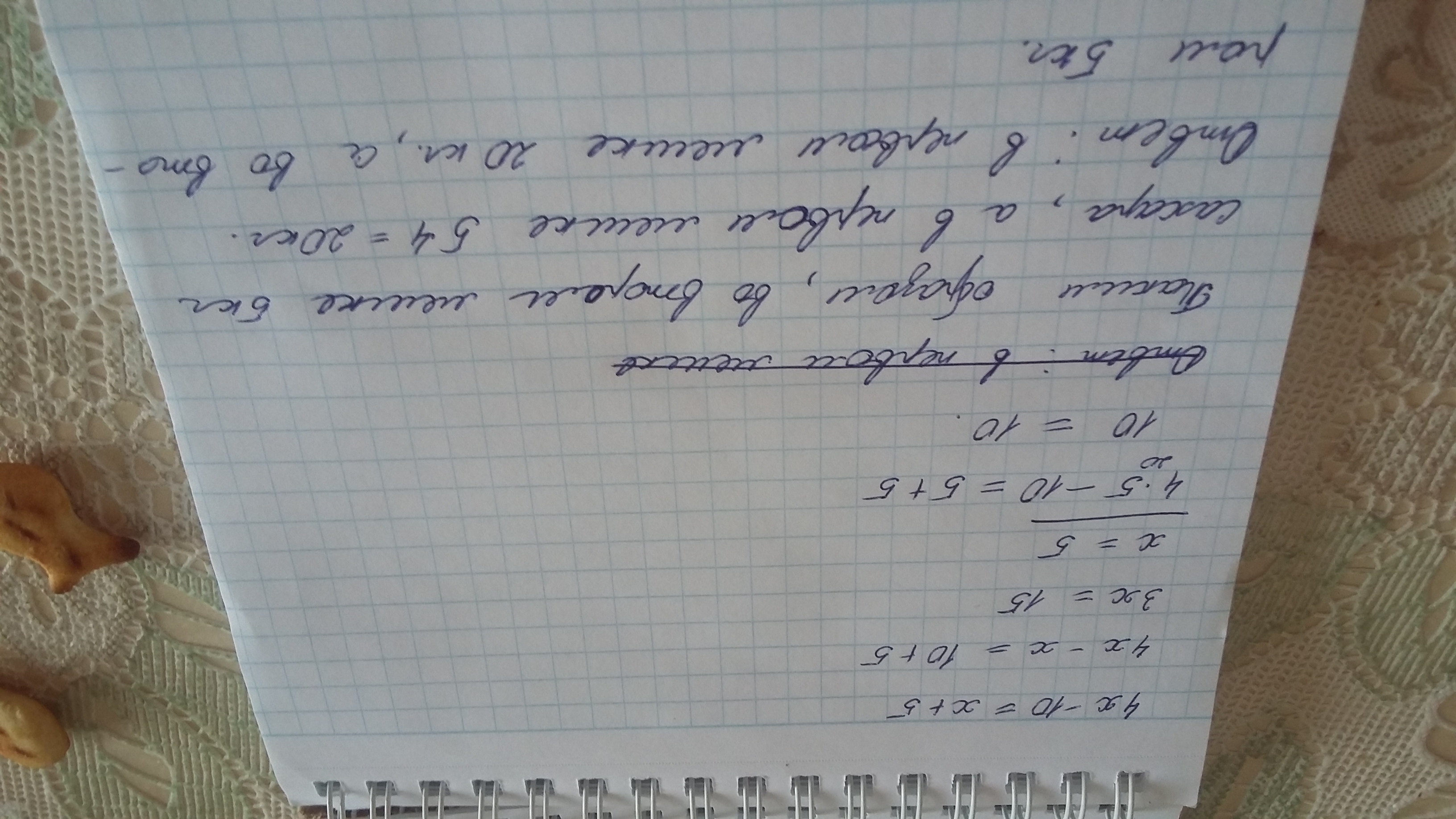 В одном мешке было в 4 раза больше сахара чем в другом. Когда из первого мешка взяли 10 кг сахара, а во второй досыпали 5 кг, то в мешках сахара стало поровну. Сколько кг сахара было в каждом мешке с начало!