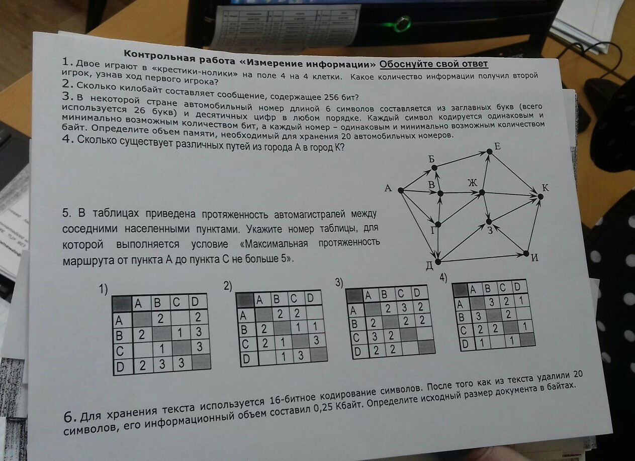 В 6 номере тебе надо будет 20 умножить на 16 =320это размер 20 символов в битах надо перевести в байты получится 40 . и 0.25Кб перевести в байты это 256 (я не очень понял что надо записать в ответе , размер документа до или после , но если до , то получается 256+40 =296 , а если после то просто 256)