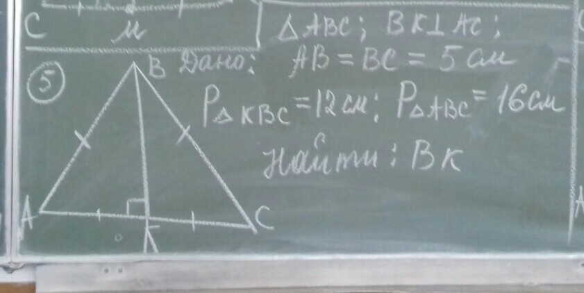 Рквс=ВС+ВК+КС=12см ВК=Р-ВС-КС=12-5-3=4 см