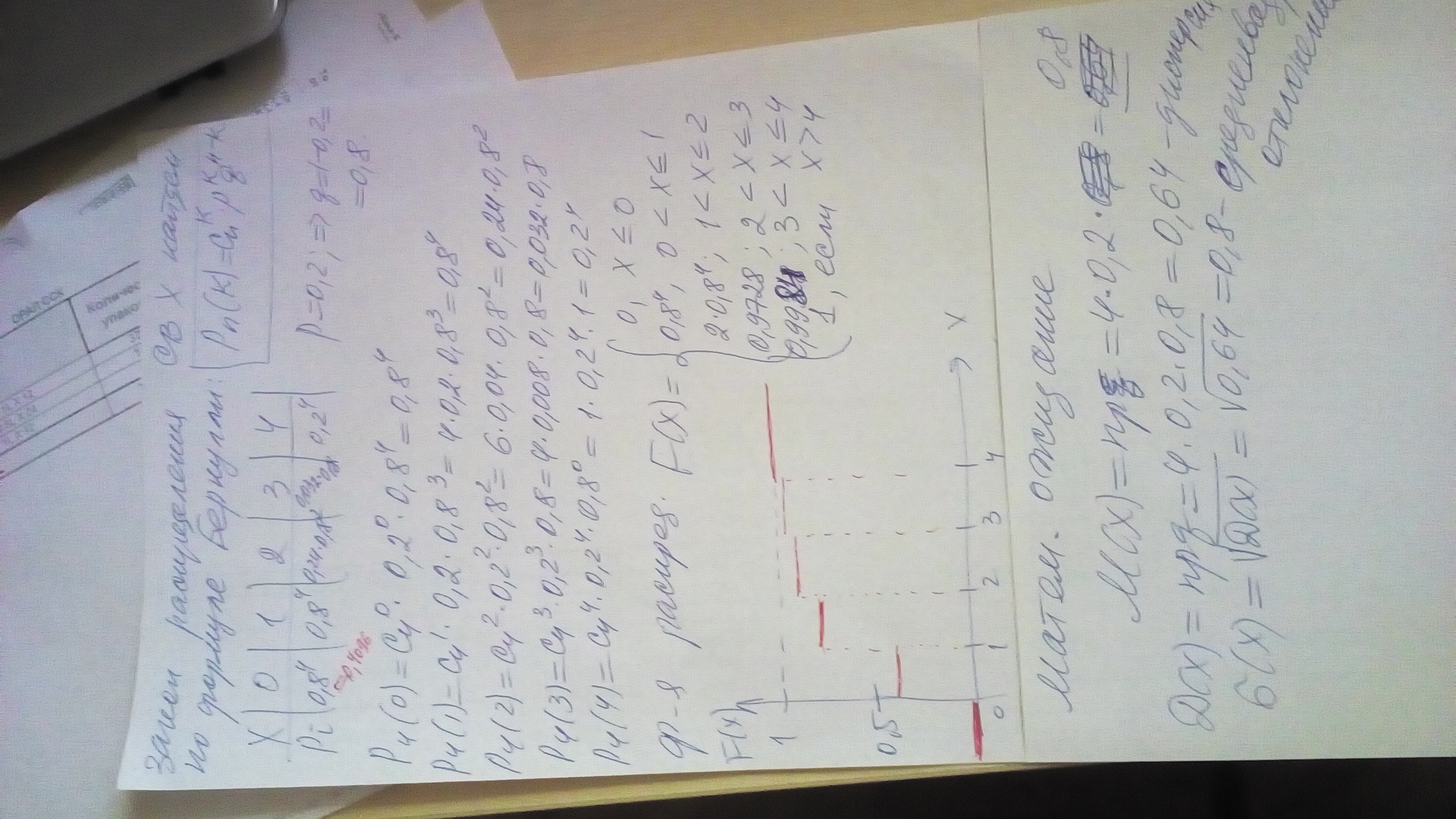 2. Устройство состоит из четырех независимо работающих элементов. Вероятность отказа каждого элемента в одном опыте равна 0,2. Составить закон распределения случайной величины X ‒ числа работающих элементов в одном опыте.