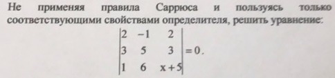 Если определитель равен нулю, то две строчки или столбцы равны. Отсюда х+5=1, х =-4