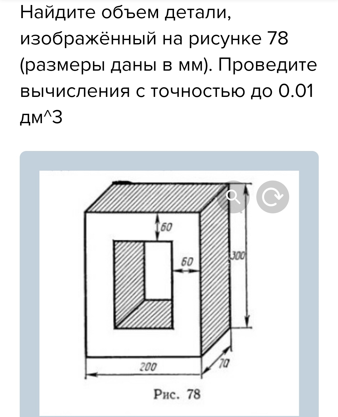 в данной задаче нужно посчитать объем вырезанного участка и объем всей целостной детали, после чего сможем найти объем детали с "дырой"