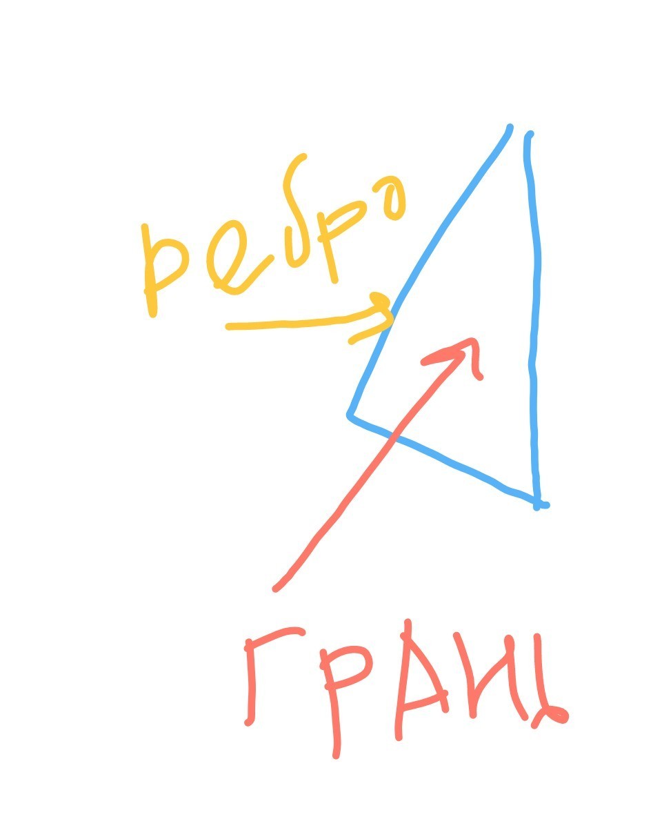 вроде понятно? вот сами отрезки это ребра. вот в триугольнике 3 ребра. грань это целая сторона