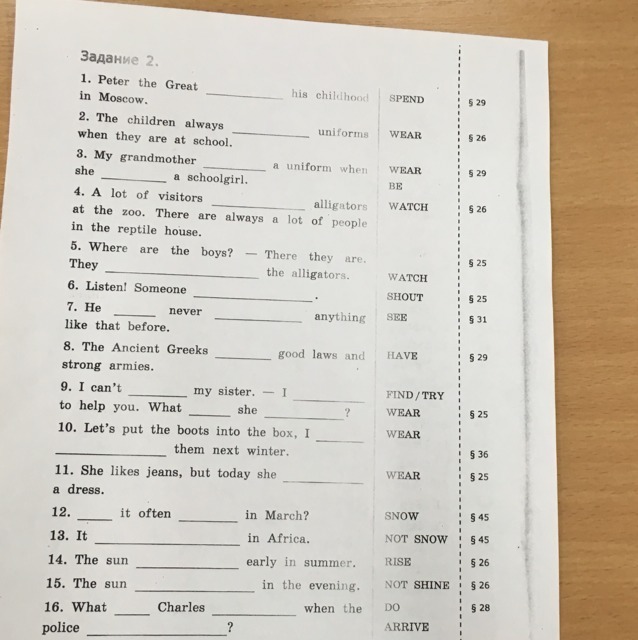 9. I can`t find my sister. - I try to help you. What does she wear?