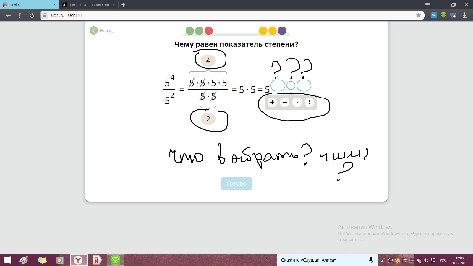 мне кажется нужно в первом писать 4, потом выбрать - , а потом 2, и получится как раз 2 степень (5^2=5×5)