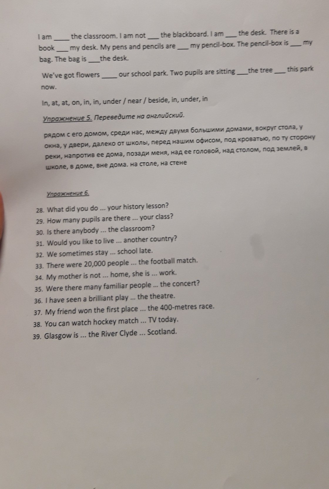 в номере 4 нужно заполнить пропуски предлогами in, on, at, under