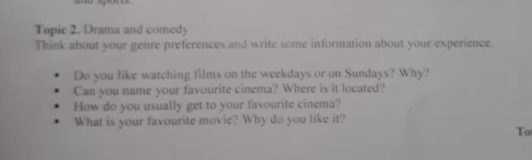 2)My favorite cinema is.... (название кинотеатра) and it is located..... (местонахождение кинотеатра).