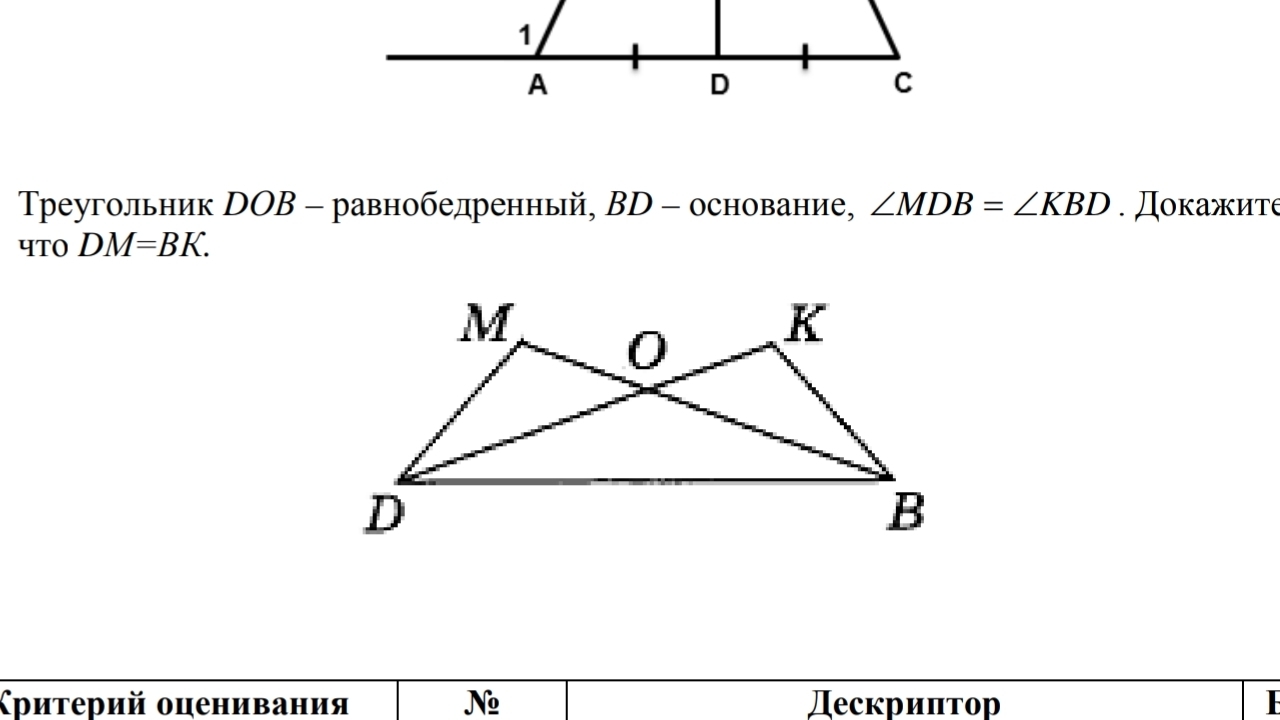 Треугольники ДМВ и КДВ равны по стороне и прилежащим углам