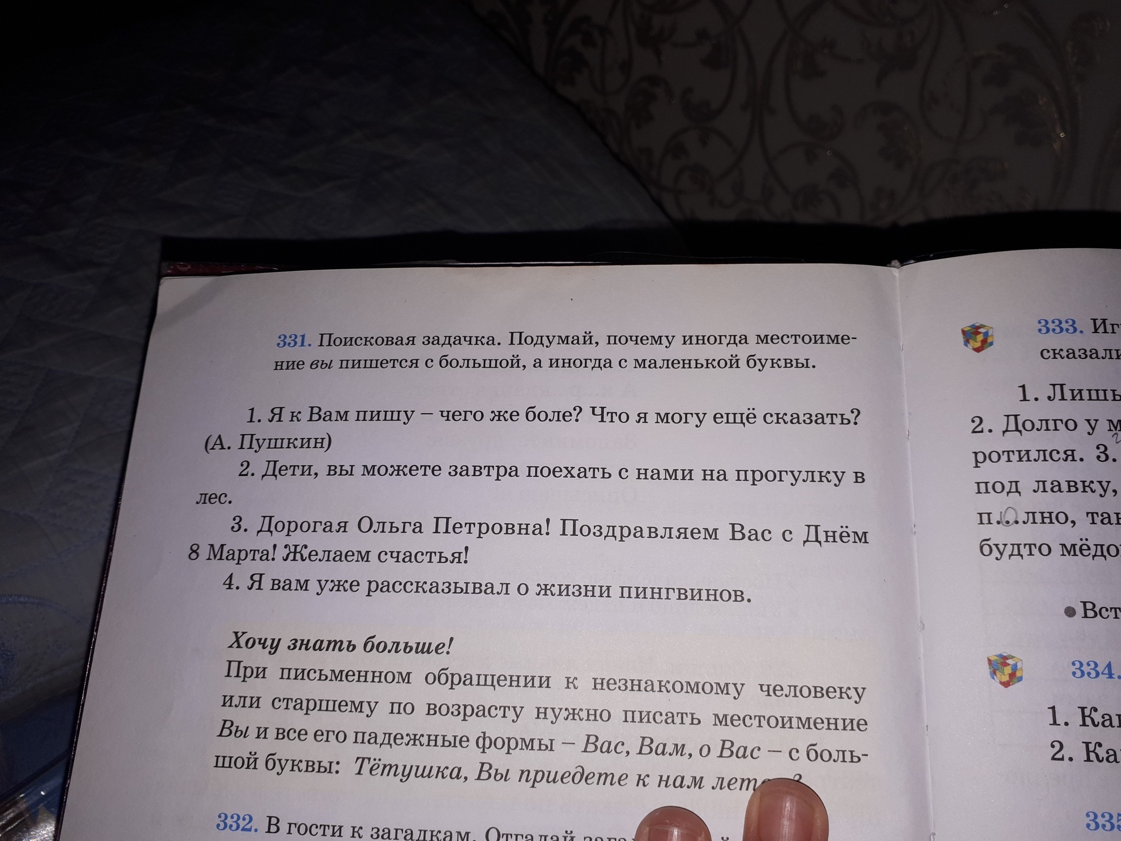 Местоимение вы- нужно писать с большой буквы,если ты обрещаешься к кому то из незнакомых или тем кто тебя старше по возросту(предложение 1 и 3).А с маленькой буквы когда ты обращаешься не к одному,а к нескольким людям(например к 12 ребятам)2 и 4 пиедложение.