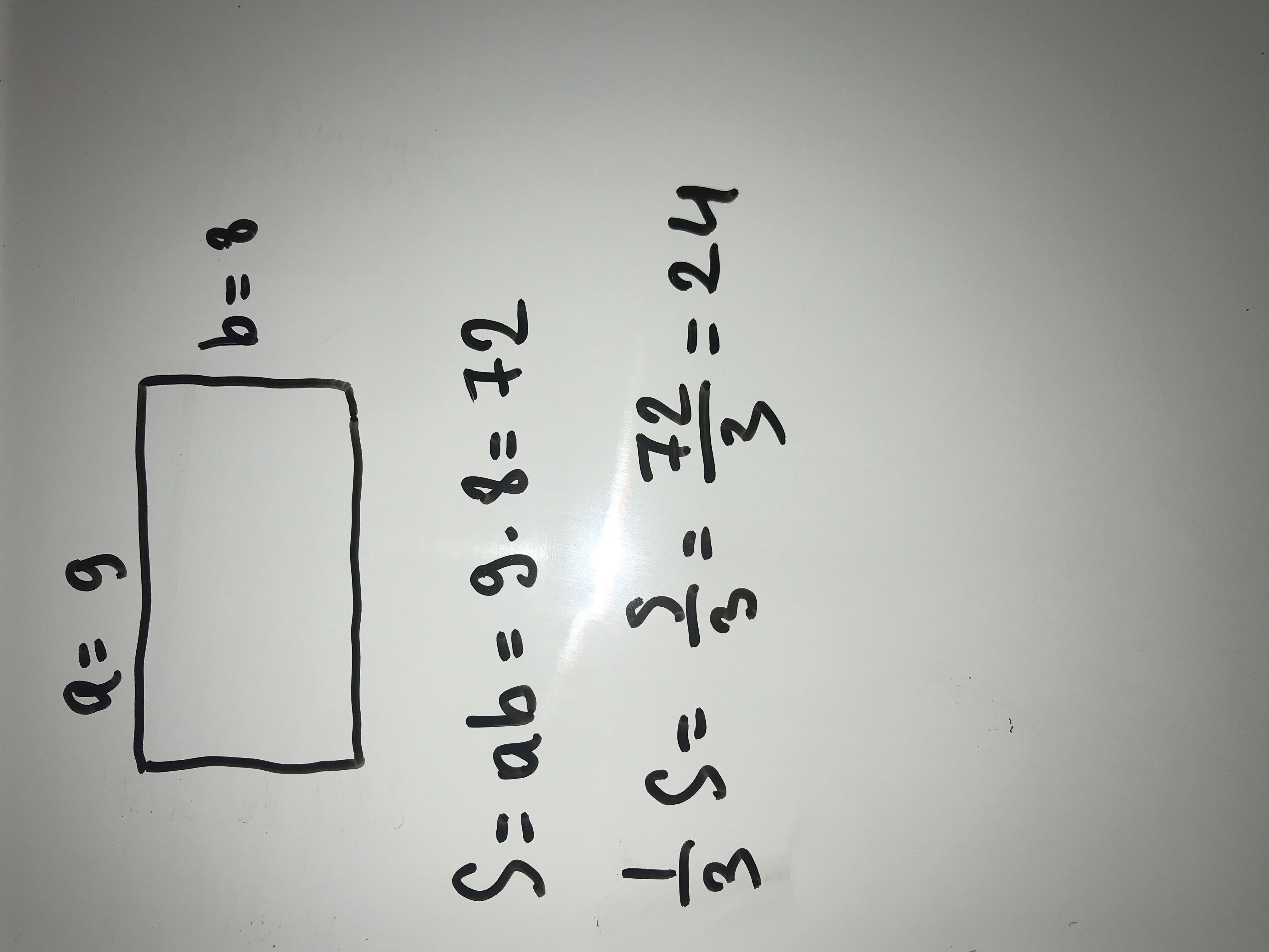 Найди площадь участка прямоугольной формы со сторонами 9 м и 8 м. Чему равна 3 часть этого участка?