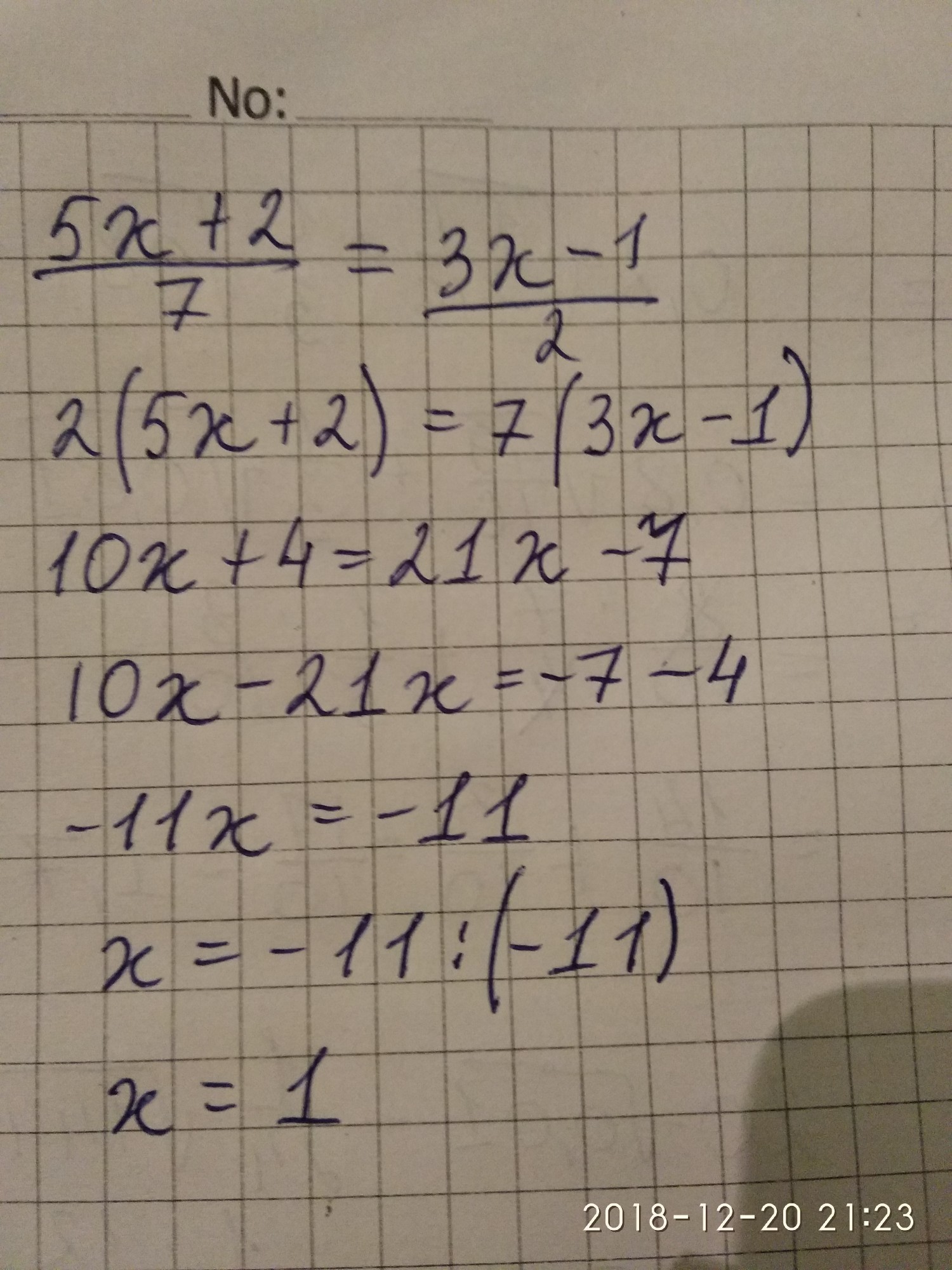 Сорьке, ты немного не так сделал(( Сначала 5х+2, дробная черта и под ней 7. И еще 3х-1, черта, и под ней 2
