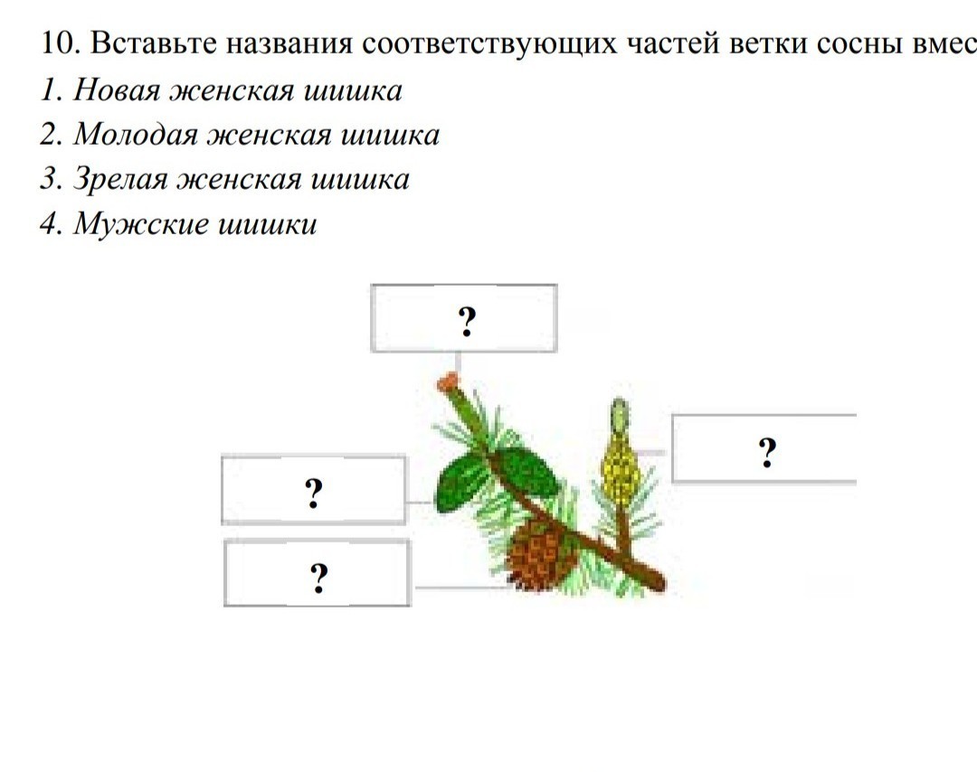 Вставьте названия соответствующих частей ветки сосны вместо знаков ?