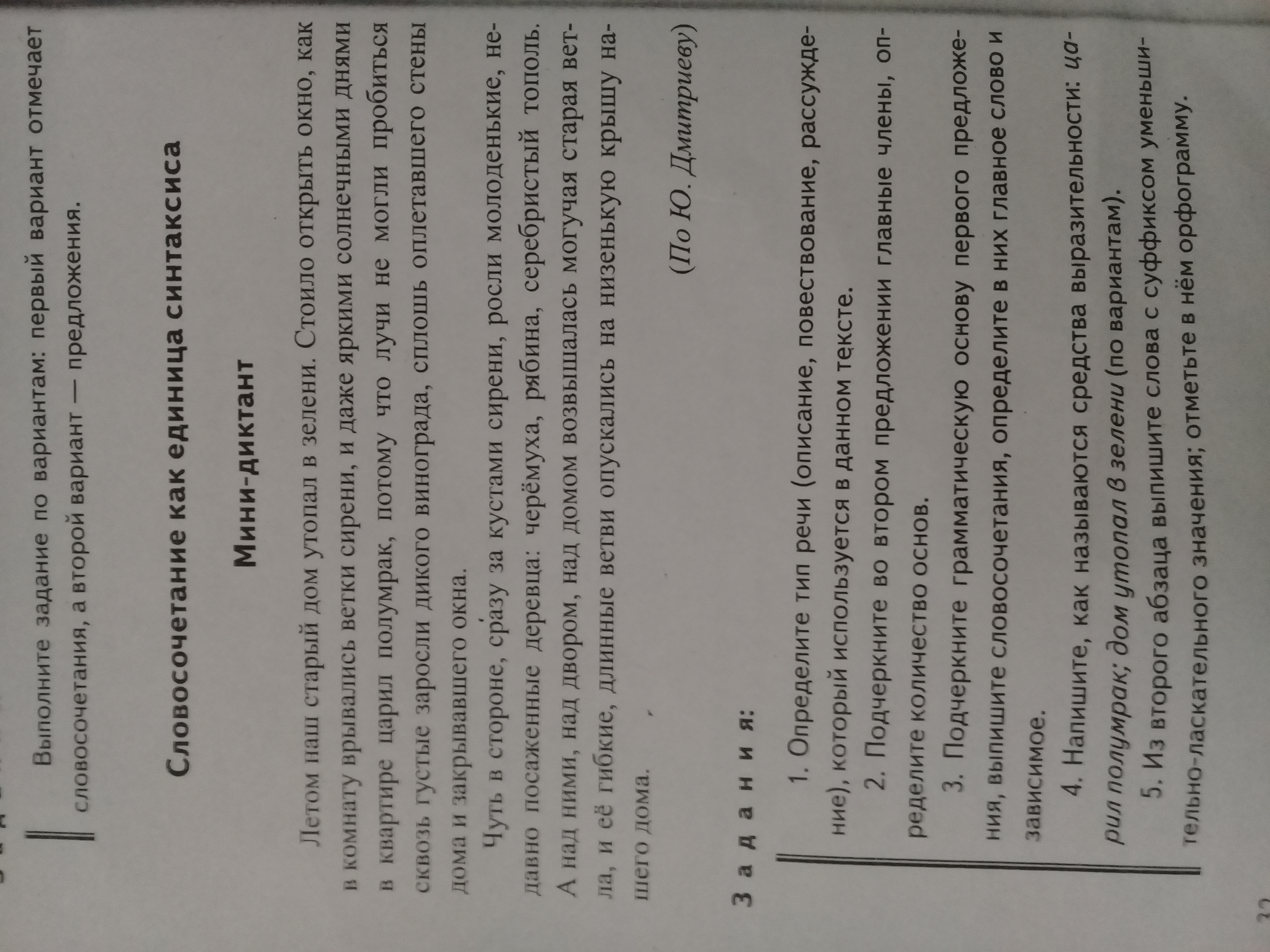 3Дом утопал,старый(завис.) дом(главн),утопал(главн) в зелени(завис).