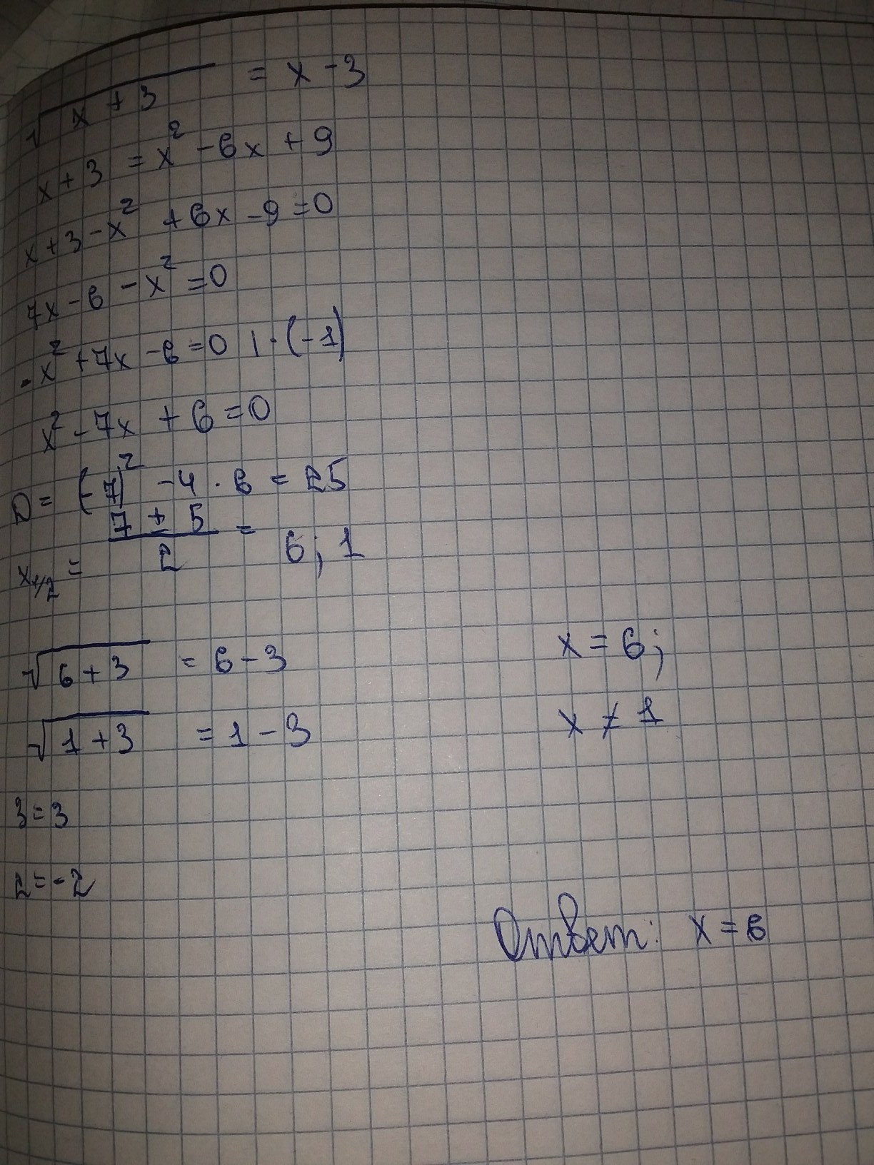 Ответ решений нет, так как при переносе в одну сторону х-х=3+3, в итоге получается 3=-3, этого быть не может. Ответ: корней нет.