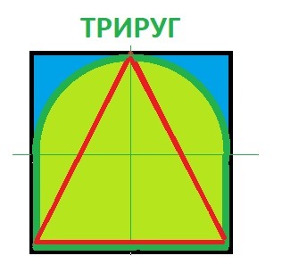 Дальнейшие рассуждения приводят к нам к фигуре которая состоит из трёх отрезков и части круга. Получилась фигура и не треугольник и не квадрат. Назовём, например, трируг.