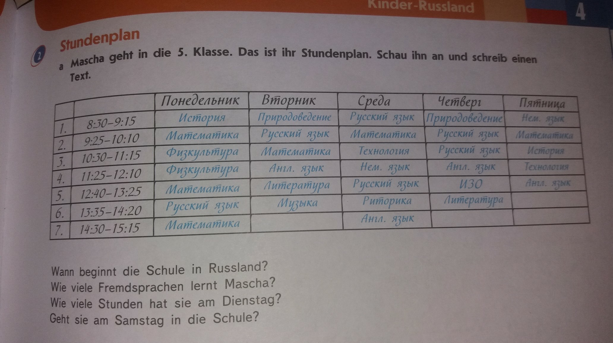 Am Dienstag hat Mascha sechs Stunden.