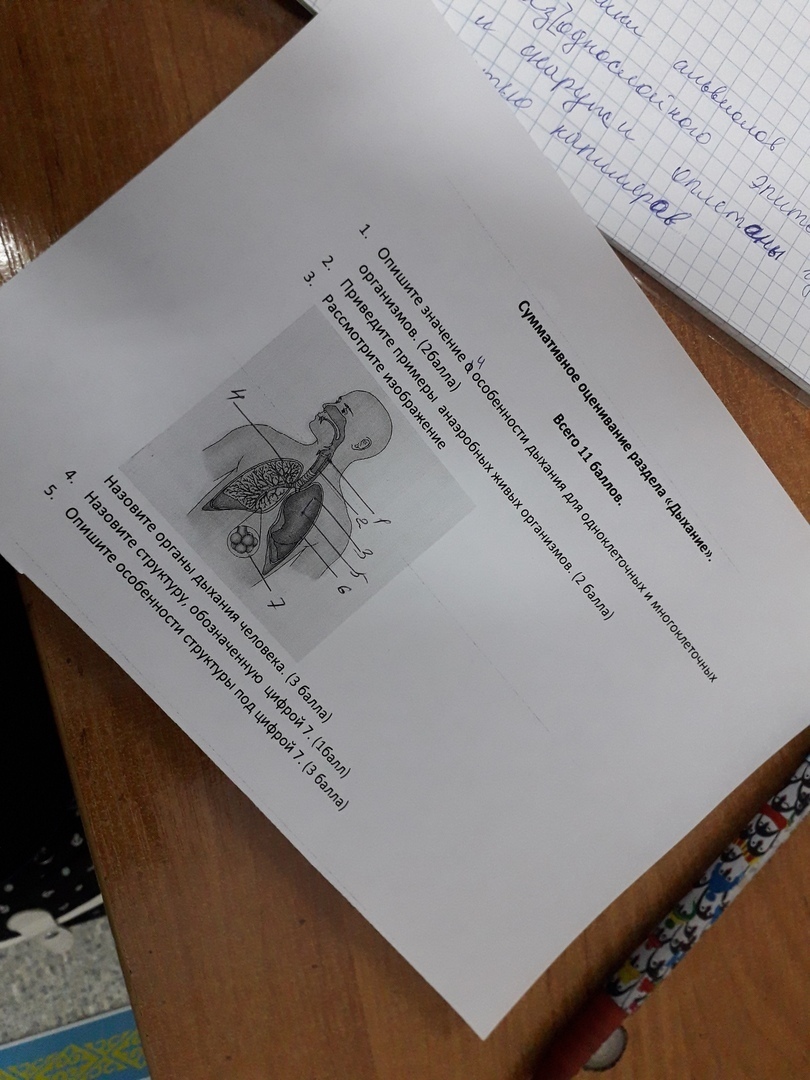 Цифрой 7 обозначены альвеолы - самые мелкие ветвления бронхов в лёгких. Они тонкостенные, оплетены густой сетью капилляров для лучшего обмена кислородом и углекислым газом.