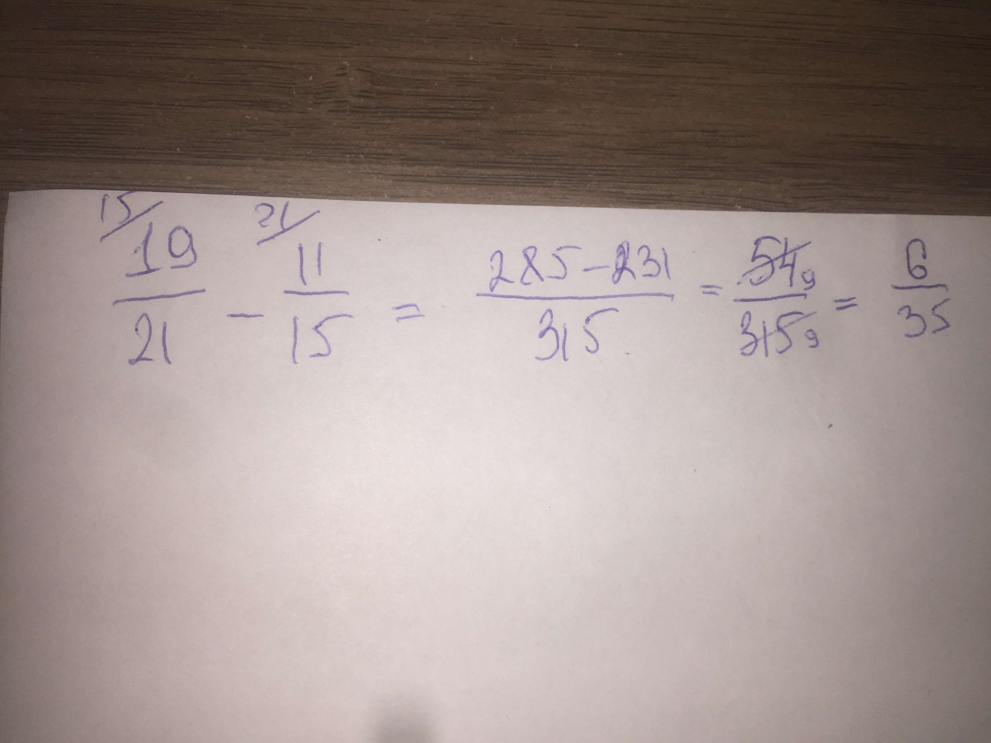 95/105 - 77/105 = 18/105 = 6/35