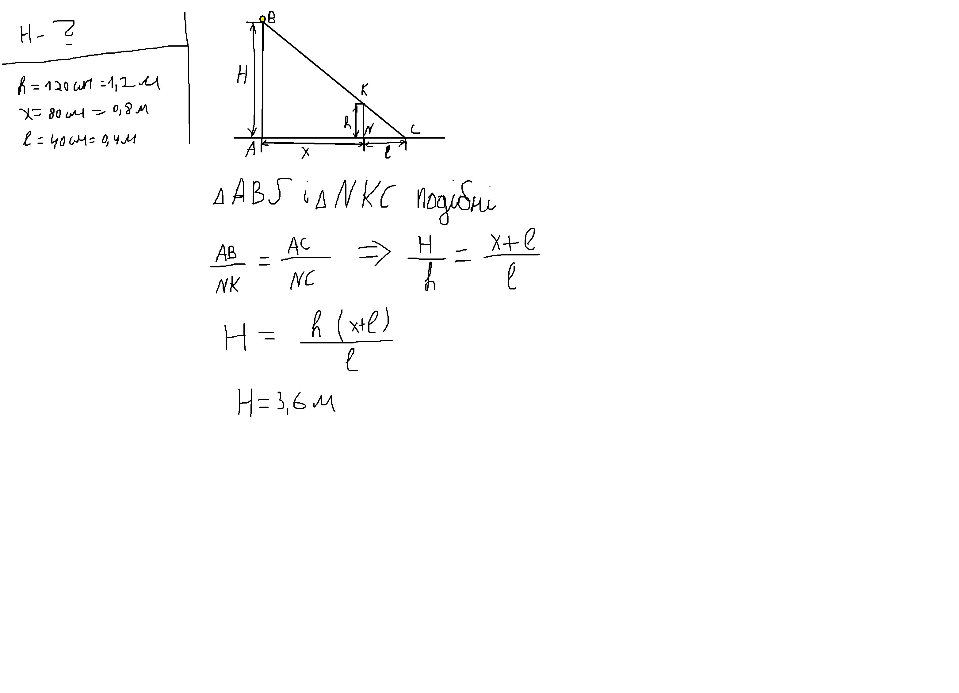 Шест высотой 120 см поставлен вертикально вблизи фонарного столба. После того, как его перенесли на 80 см от столба по направлению тени, длина его тени увеличилась на 40 см.