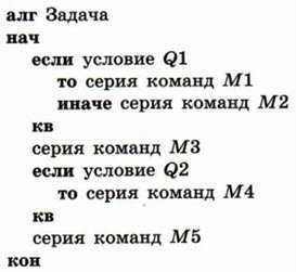 Дан алгоритм, записанный на алгоритмическом языке. Представьте его в виде блок-схемы.