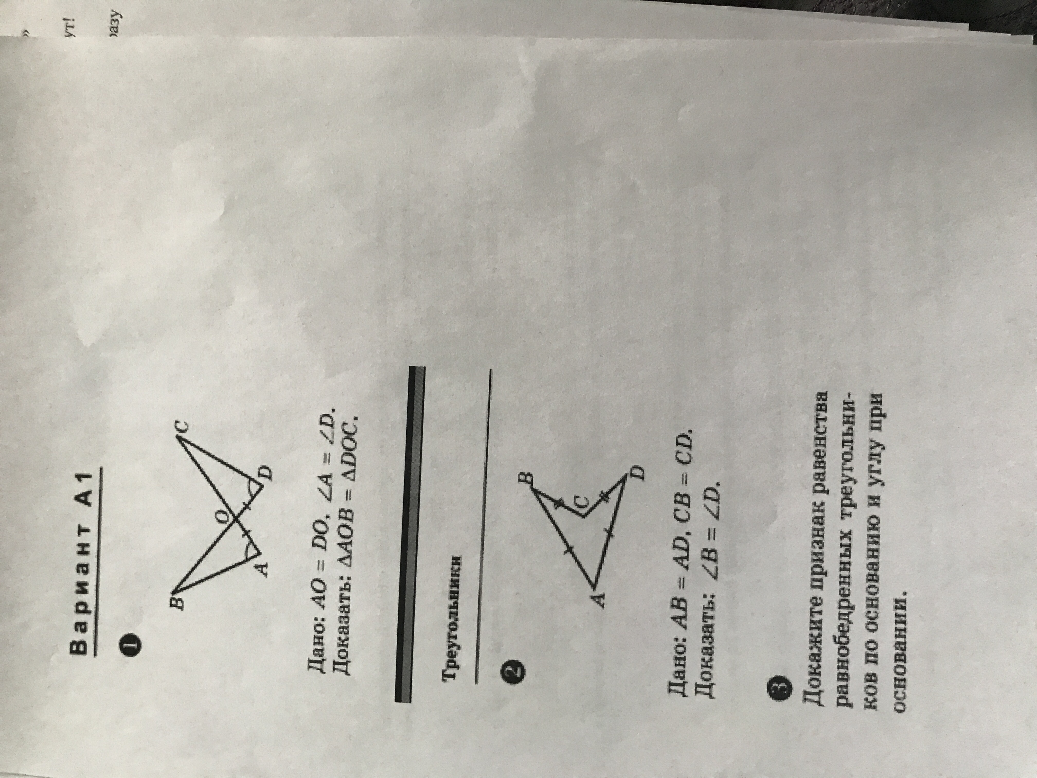 значит треугольник ∆АВО = ∆DCO по второму признаку, чтд