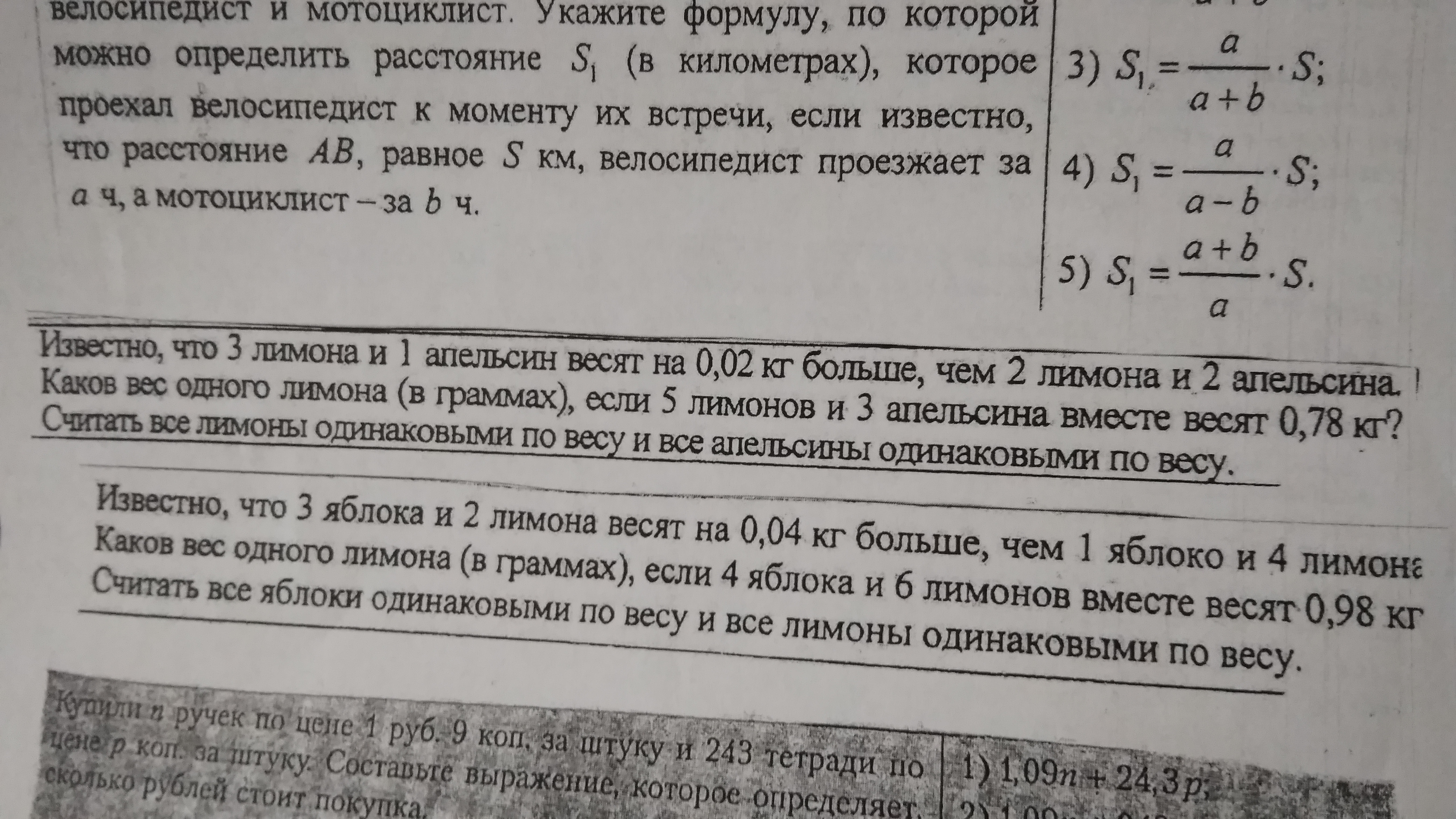 Получается: 1 лимон весит 105 г, а 1 апельсин 85 г.