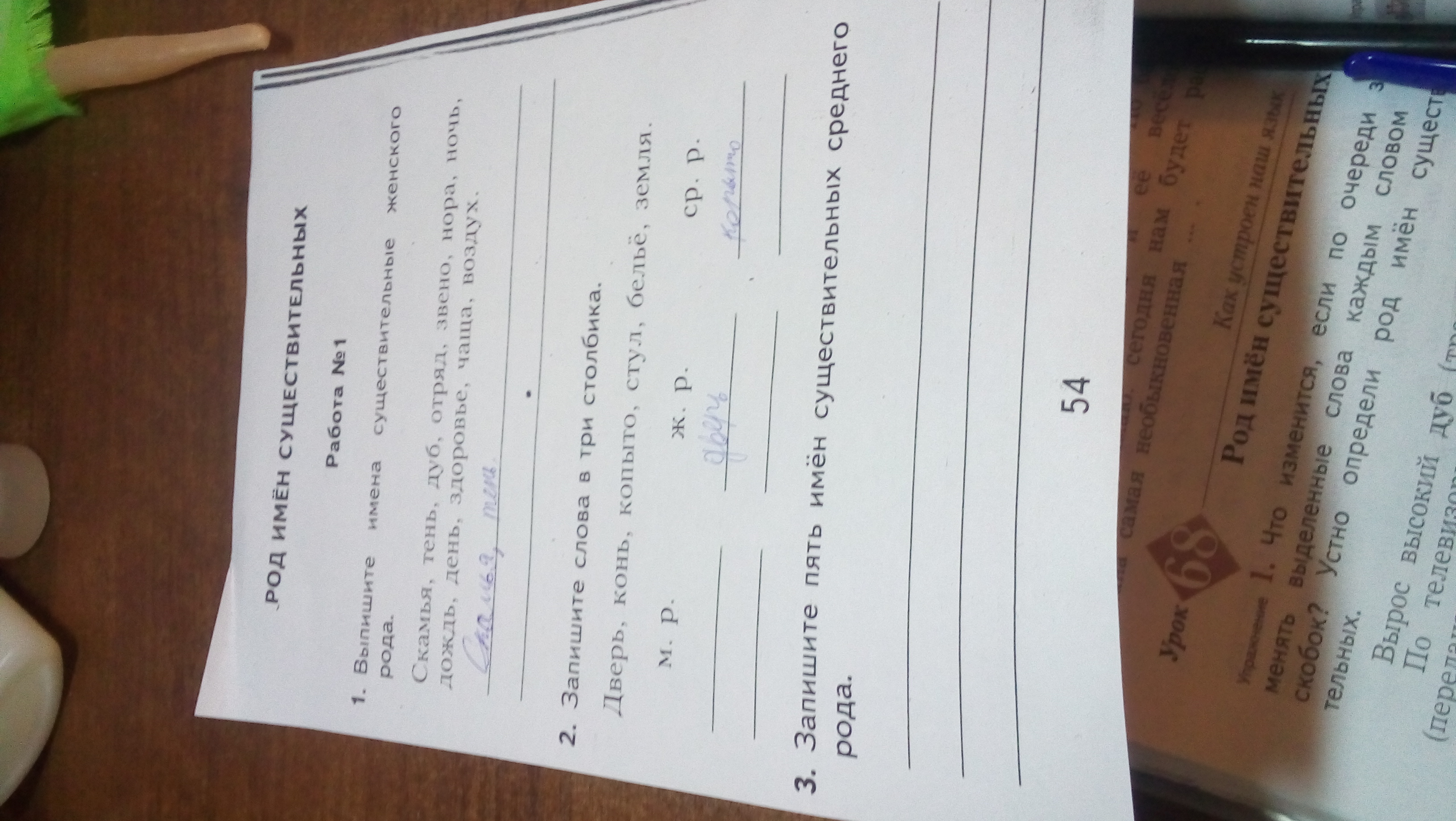 Имена существительные женского рода определяются благодаря вспомогательным словам она, моя, эта. Например: скамья (она).