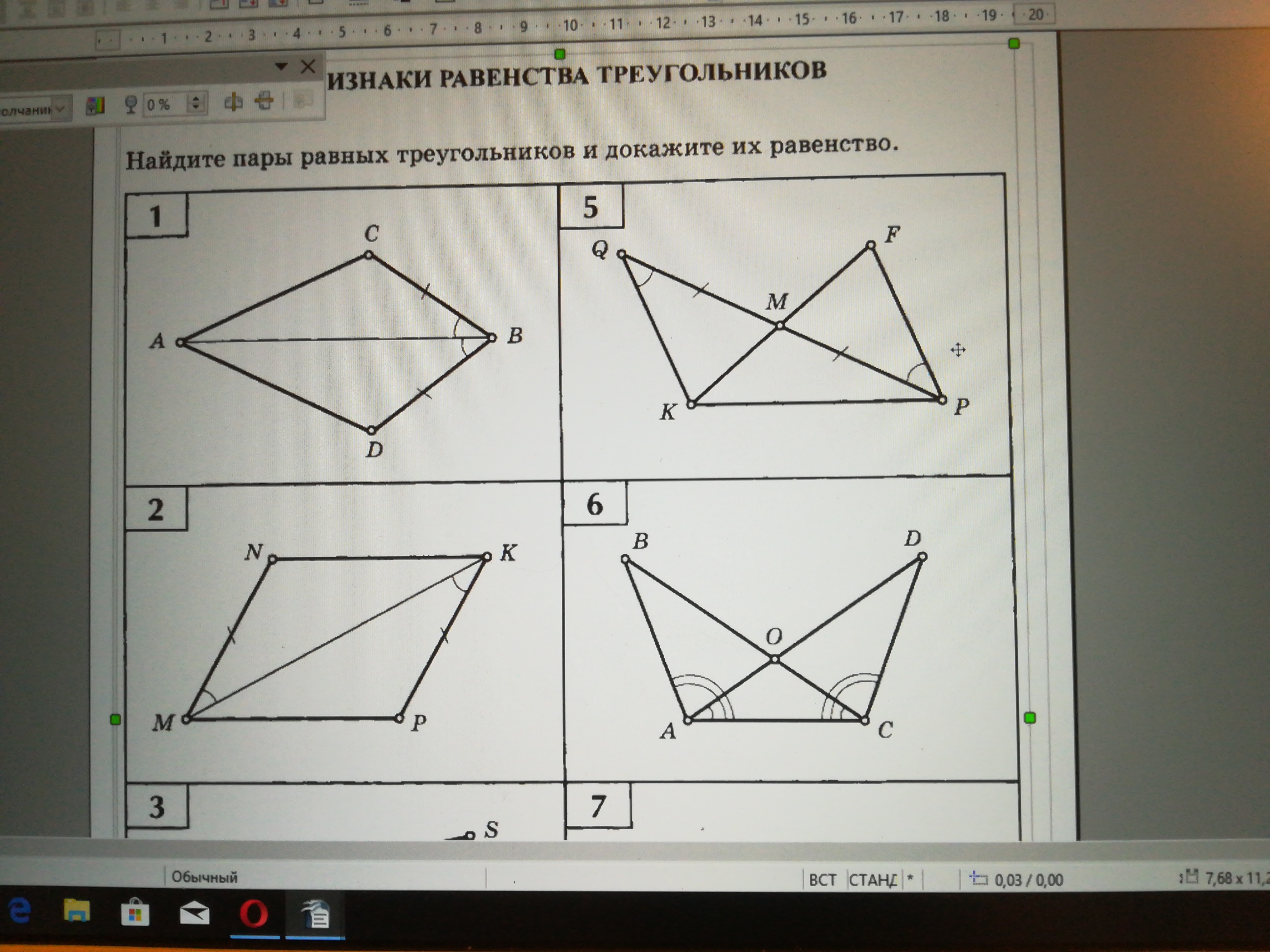 6. ∆ABO=∆CDO по стороне и двум углам ( ∆AOC - равнобедренный , поэтому AO=CO, <BOA=<DOC как вертикальные, третий угол по условию)