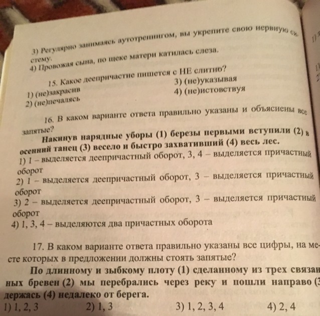 15. 4) неистовствуя, т.к. 1) не закраснев, 2) не печалясь, 3) не указывая.