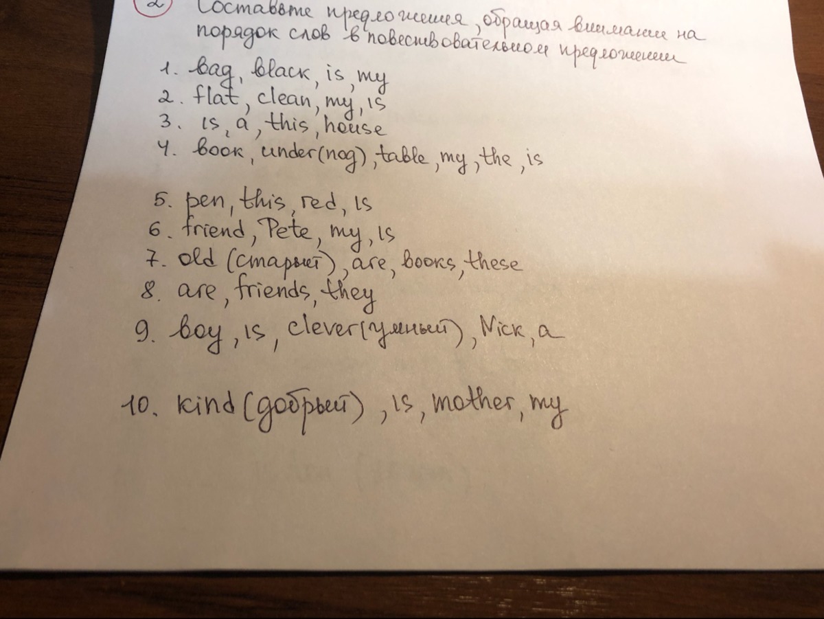 Составьте предложения обращая внимание на порядок слов в повествовательном предложении