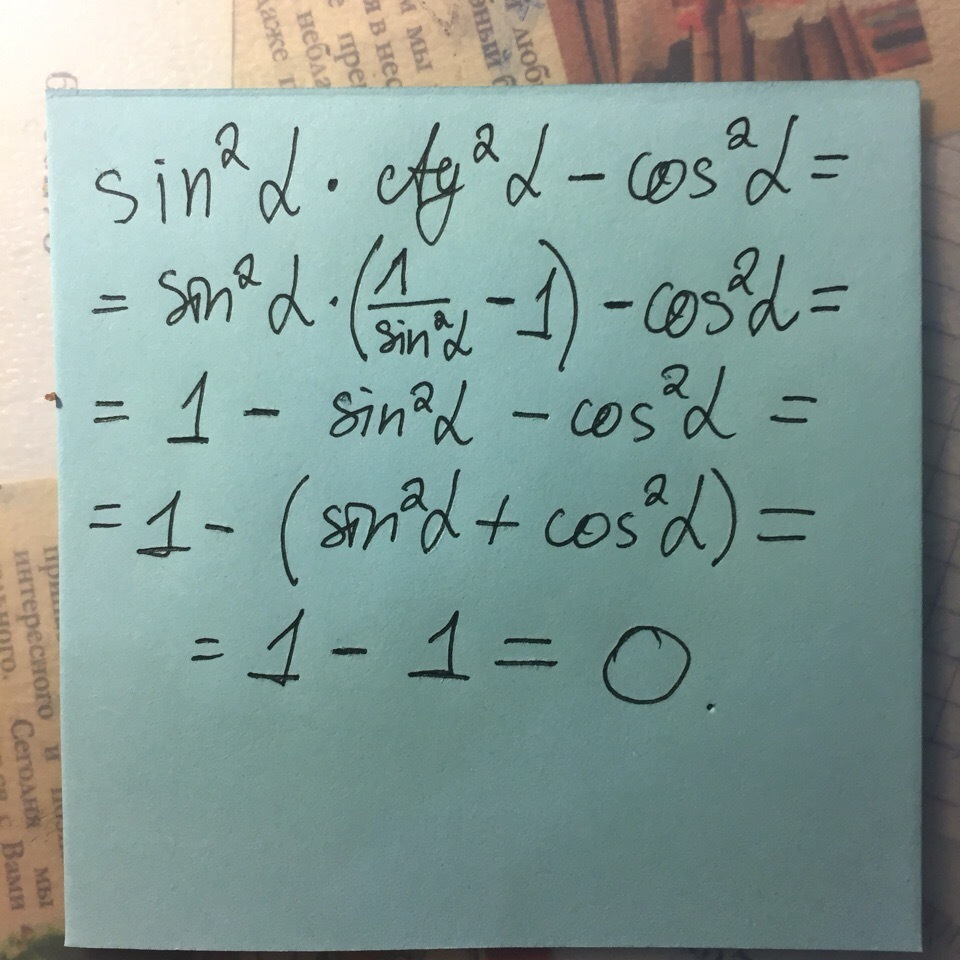 Действие в скобках - по основному тригонометрическому тождеству)