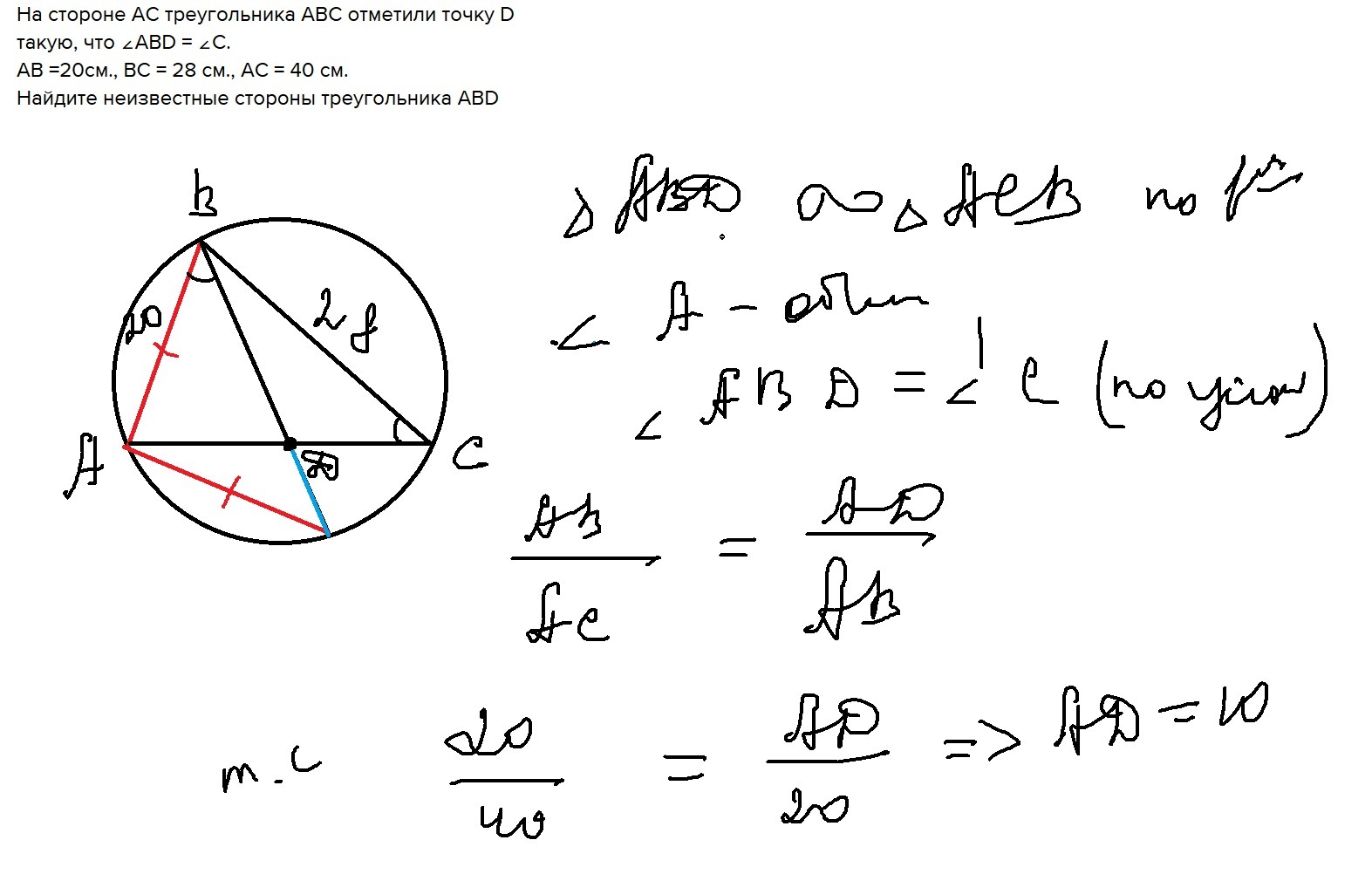 На стороне АС треугольника АВС отметили точку D такую, что ∠ABD = ∠C.