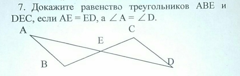 По стороне и двум прилежащим к ней углам. Угол АЕВ=CED- вертикальные.