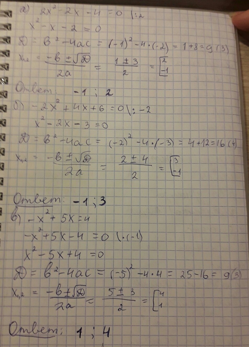 Спасибо, но ты забыла написать решение << с) –х² + 5х = 4>>