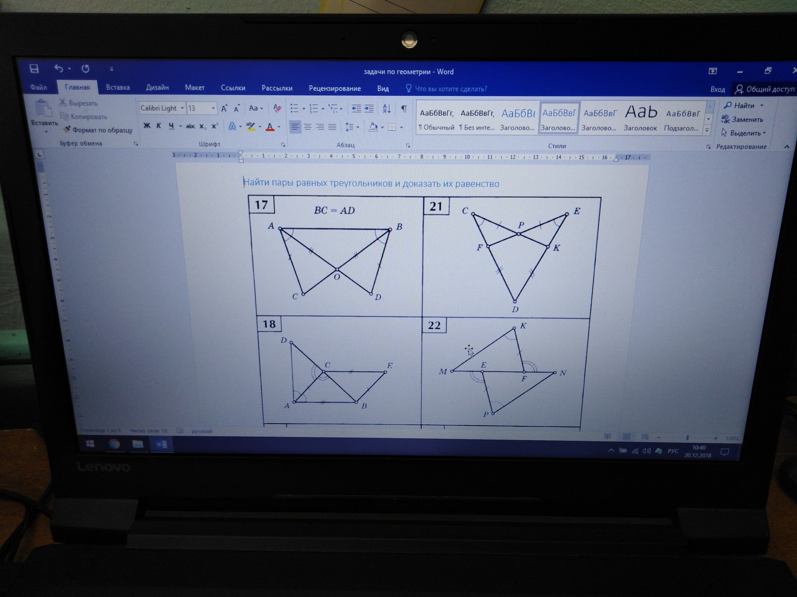 22.Берёшь смежные углы и находишь их вторую часть, они равны, т.к. и первые части смеж. углов равны, а дальше по 2 углам и стороне между ними